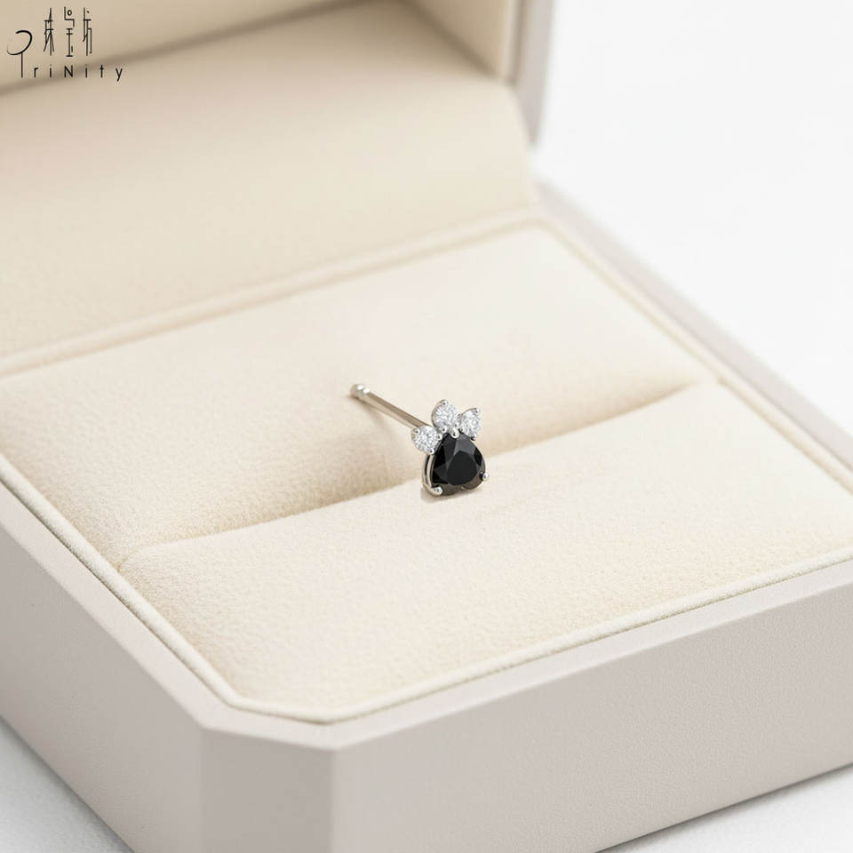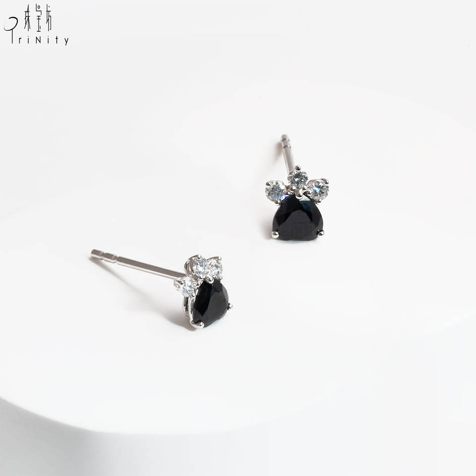 คอลเลคชั่นใหม่ ต่างหูแบบติดหูเดี่ยว ดีไซน์ทันสมัย ทองคำขาว 18K ประดับด้วยสปิเนลสีดำและเพชรธรรมชาติ ของขวัญพิเศษสำหรับผู้หญิง