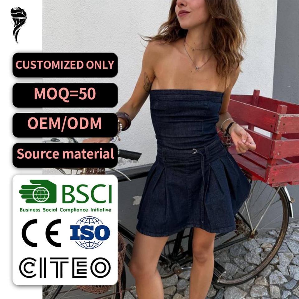 คอลเลคชั่นใหม่ ชุดเดรสยีนส์ทรงขาบานสำหรับผู้หญิง สไตล์ไนต์คลับ สายเดี่ยว ยืดได้ ชุดเดรสยีนส์สั้นรัดรูปสำหรับสาวฮอต