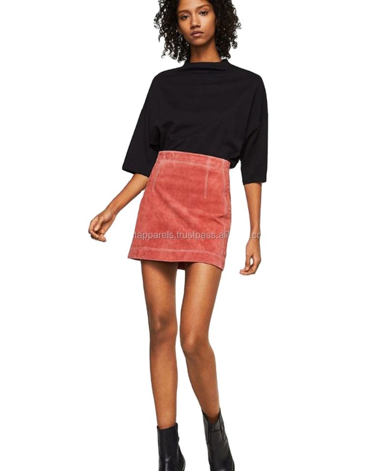 กระโปรงหนังกลับแท้ทรงเอ สีใหม่ คุณภาพสูง กระโปรงหนังกลับสั้นสีดำแบบซิปสำหรับผู้หญิง สไตล์เซ็กซี่