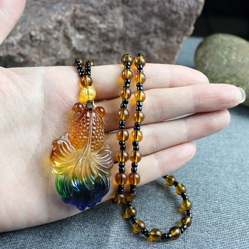 สร้อยพร้อมจี้เทพเจ้าแห่งความมั่งคั่ง,สร้อยแก้วคริสตัลเจ้าแม่กวนอิมนำโชคสายสเวตเตอร์เรโทรสีใหม่