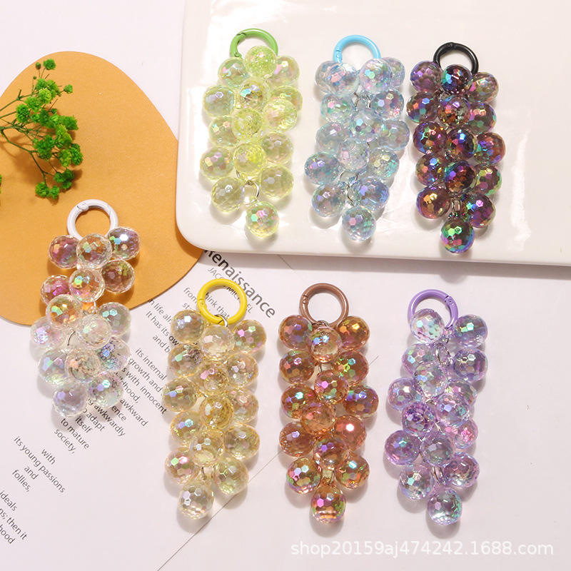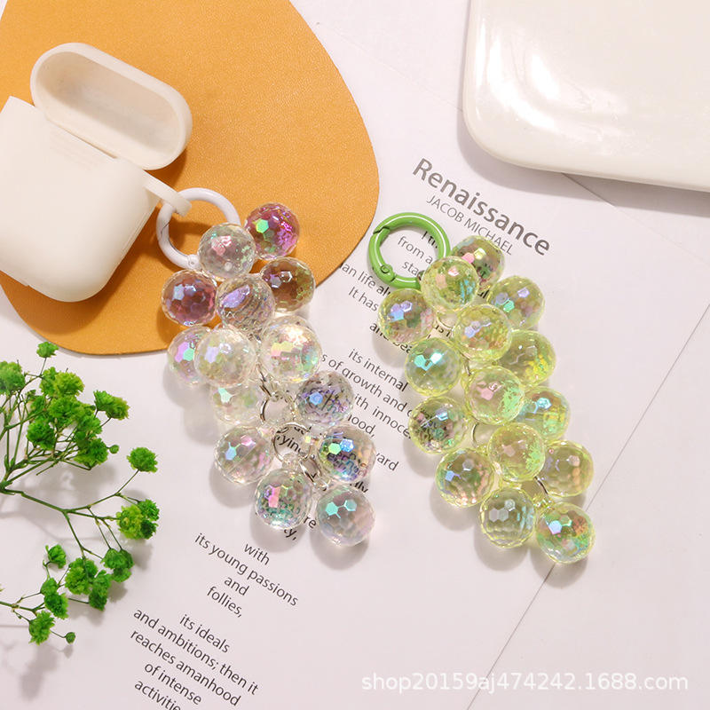 ที่แขวนกระเป๋าเคสหูฟังพวงองุ่นลูกปัดอะคริลิคโปร่งแสงสีสันสดใสใหม่