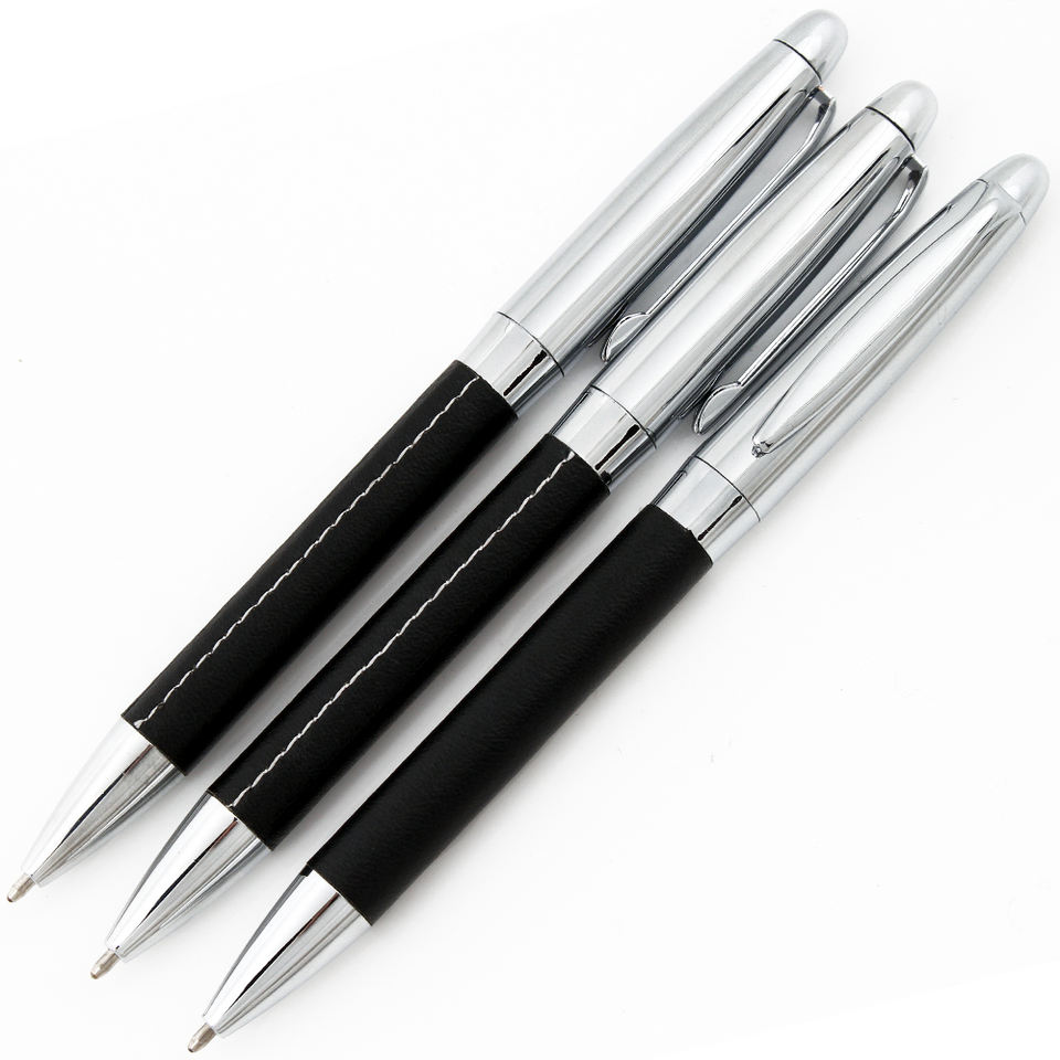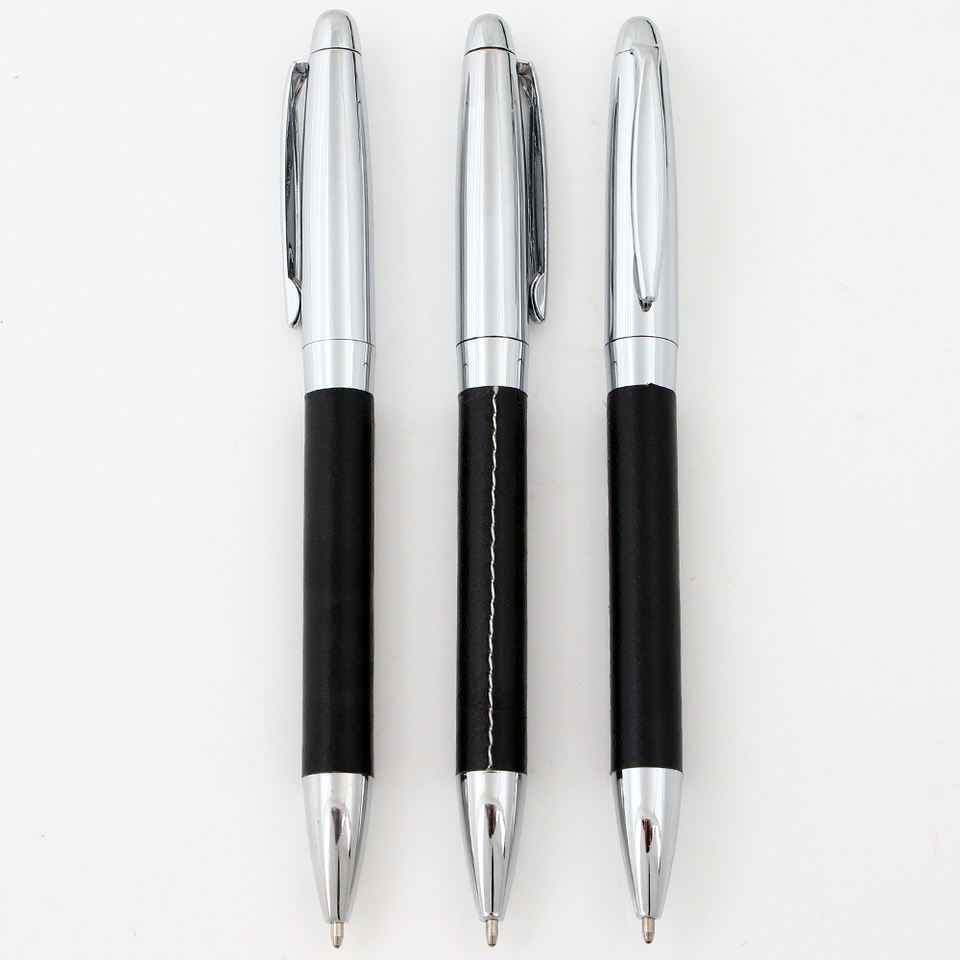 ปากกาลูกลื่นหัวโลหะหุ้มหนัง PU สีสันสดใส พร้อมสลักโลโก้ด้วยเลเซอร์