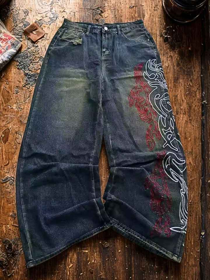 กางเกงยีนส์ทรงบูทคัท ขาตรง ปักลายสวยงาม พร้อมเชือกผูกเอว ระบายอากาศได้ดี น้ำหนักเบา สวมใส่สบาย คุณภาพพรีเมียม