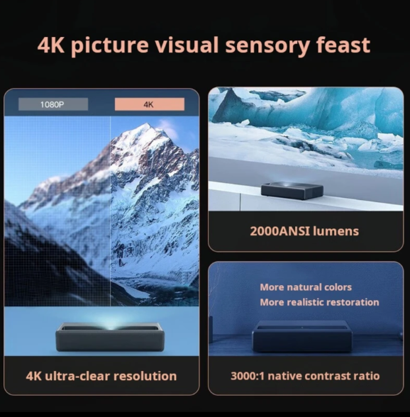 โปรเจคเตอร์เลเซอร์ระยะฉายสั้น Xiaomi 4K รุ่นใหม่ 1S ระดับอุตสาหกรรม DIY OEM พร้อมการรับประกัน 3 ปี โครงสร้างอะลูมิเนียมและเหล็ก