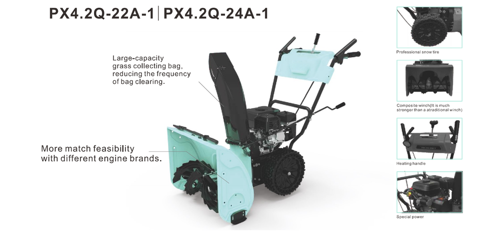 เครื่องเป่าหิมะแบบนั่งขับขนาดกะทัดรัดรุ่นใหม่ พร้อมเครื่องยนต์และมอเตอร์ ใบมีดกวาดหิมะ ใช้งานง่าย เบาะนั่งพร้อมระบบทำความร้อน ออกแบบเพื่อความสะดวกสบายสำหรับผู้สูงอายุ