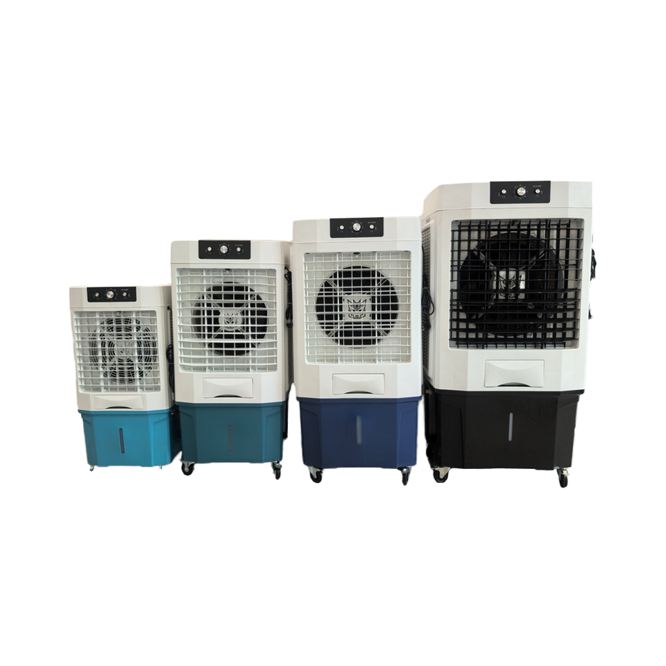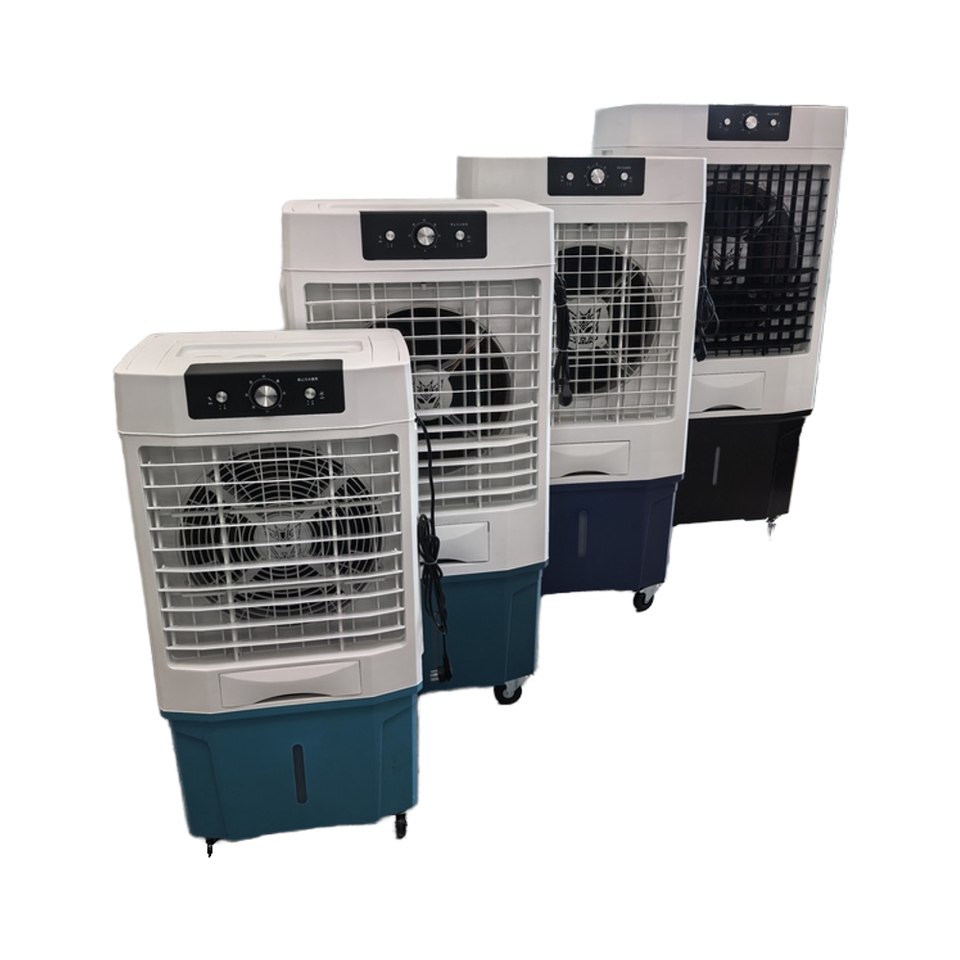 เครื่องทำความเย็นแบบระเหยอิเล็กทรอนิกส์แบบพกพาสภาพใหม่สำหรับใช้ในบ้าน60/80/160/180L เครื่องยนต์ตั้งพื้นเป็นส่วนประกอบหลัก