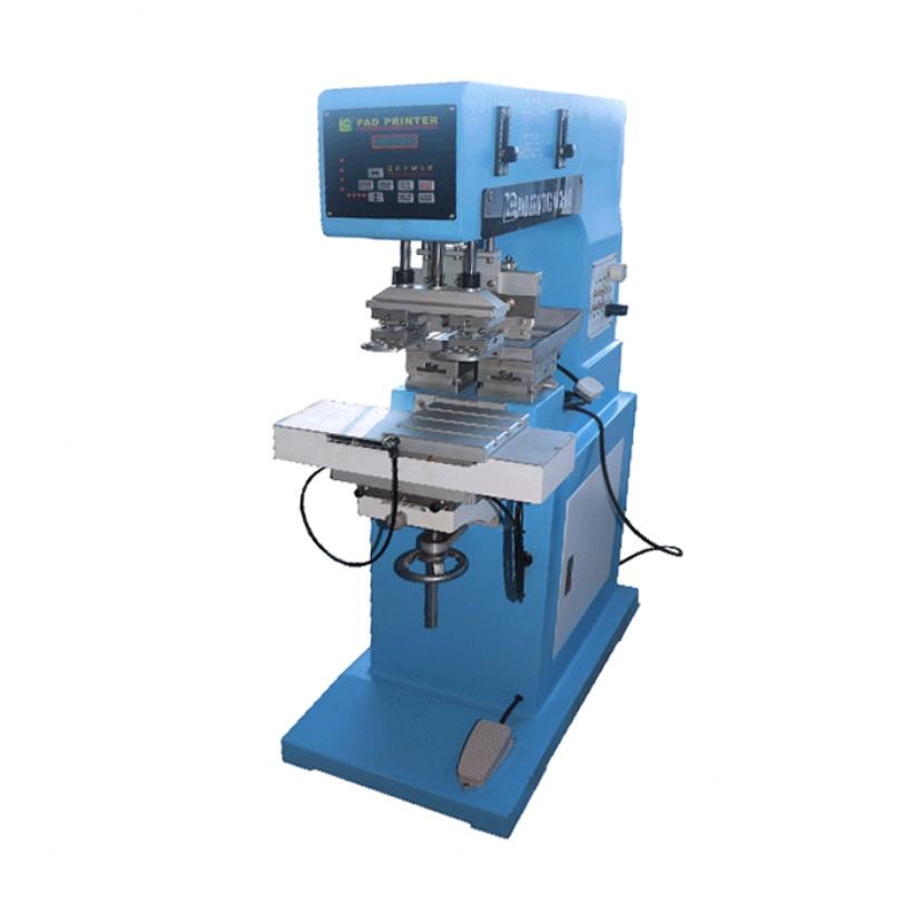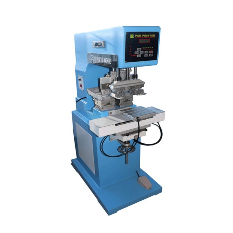 เครื่องพิมพ์ฉลากแบบกึ่งอัตโนมัติสองสี สภาพใหม่ พร้อมถาดหมึกแบบเปิด สำหรับพิมพ์แกนพลาสติกและแผ่นรองเครื่องยนต์