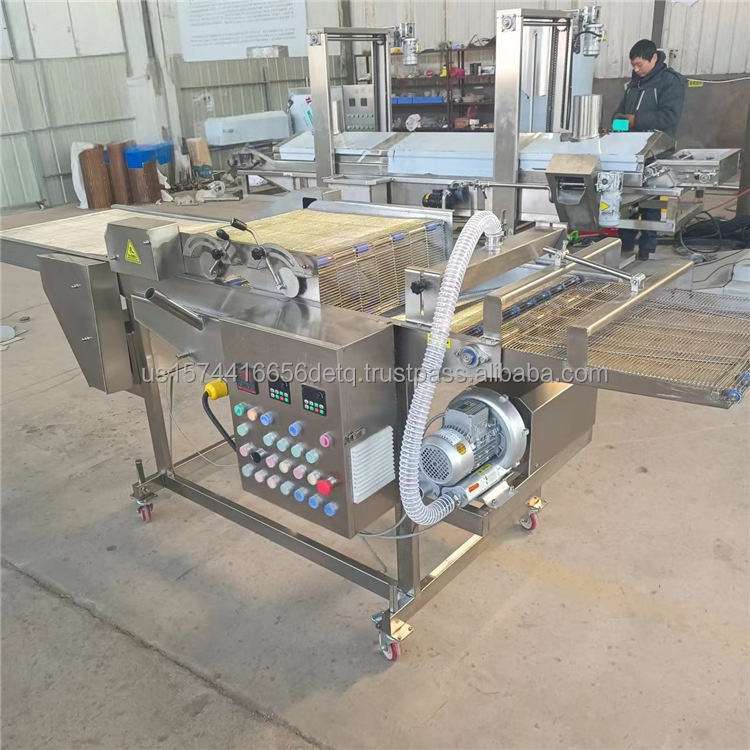 เครื่องเคลือบและชุบแป้งเนื้อและเนื้อปลา/ไก่แบบต่อเนื่องรุ่นใหม่ 380V ความจุสูง 100 กก./ชม.