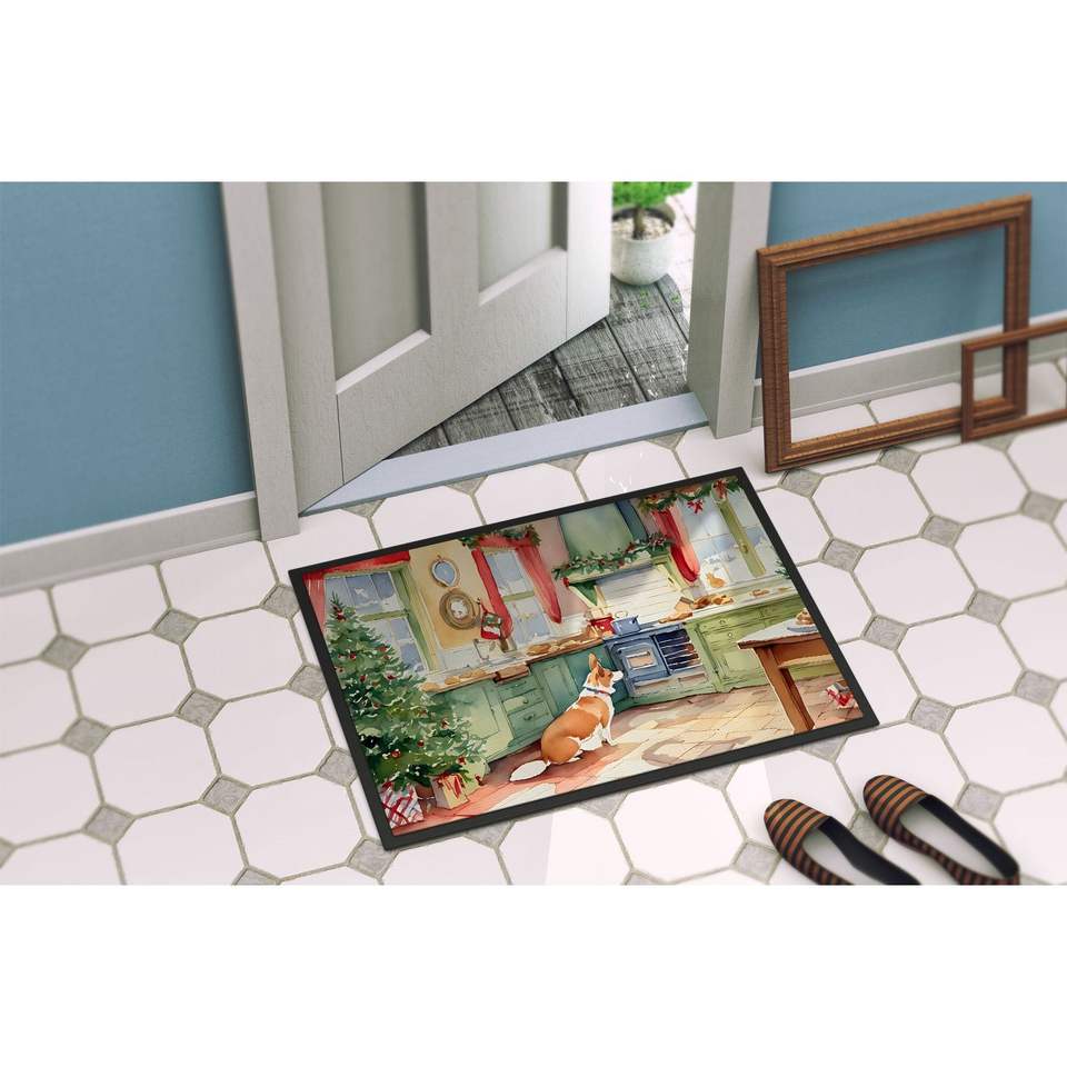 ใหม่ Corgi คุกกี้คริสมาสต์พรมเช็ดเท้ากันลื่นพื้นเตี้ย18H x 27W สำหรับการใช้ทางเข้าในร่มและกลางแจ้ง