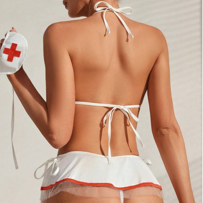 ชุดคอสเพลย์เซ็กซี่แบบใหม่ ชุดชั้นในวาบหวิวแบบสามจุด ชุดเดรสวันพีซแบบโปร่ง ชุดยูนิฟอร์มพยาบาลแบบมีโครงเสริมทรง ชุดชั้นในผู้หญิงแบบดันทรง ระบายอากาศได้ดี กระชับเอว