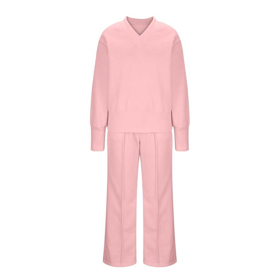 ชุดวอร์มผ้าฝ้ายสองชิ้นสำหรับผู้หญิงเสื้อแขนยาวใส่สบายพร้อมกางเกงเข้าชุด