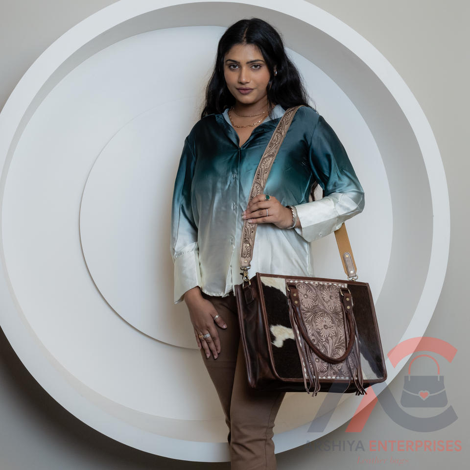 กระเป๋าหนังวัวสำหรับผู้หญิง, กระเป๋าหนังแท้มีพู่ห้อยกระเป๋าถือช้อปปิ้ง