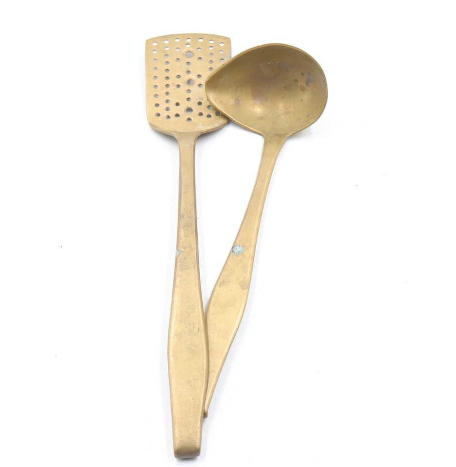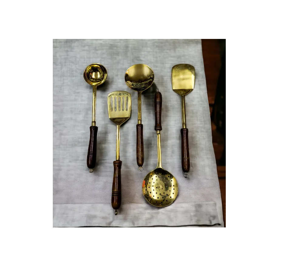 ช้อนซุปทองเหลืองช้อนตัก/ไม้พาย/ช้อนเสิร์ฟ6ชิ้นวัสดุงานฝีมือดีไซน์ใหม่ช้อนทำอาหารทัพพีแฟนซี
