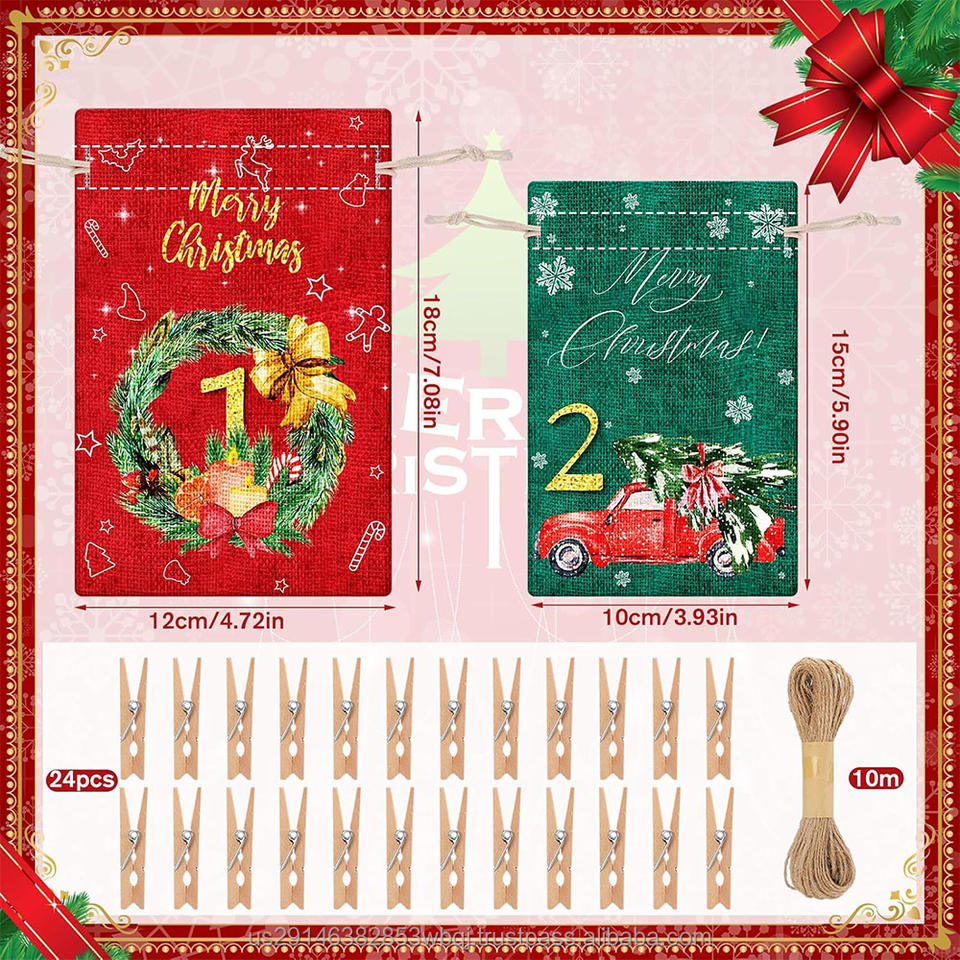 กระเป๋าของขวัญทำจากผ้าลินินปฏิทินลายคริสมาสต์แบบข้ามพรมแดนสำหรับเด็กใช้แขวนตกแต่งสำหรับวันหยุดคริสต์มาส