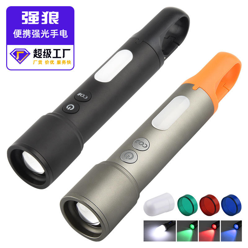 ไฟฉาย LED แบบพกพา แสงสีขาว ชาร์จไฟได้ผ่านพอร์ต Type C ตัวเรือนอะลูมิเนียมอัลลอยด์ ซูมได้ ปรับความยาวได้ ไฟฉายขนาดเล็ก ใช้สำหรับตั้งแคมป์