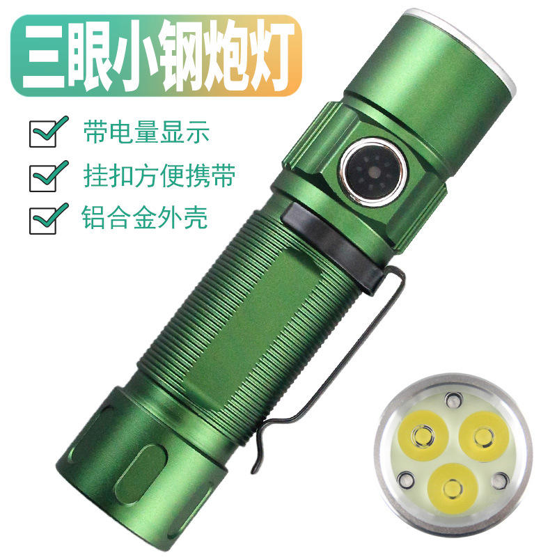 ไฟฉายสามตาขนาดเล็กแบบใหม่พร้อมคลิปหนีบปากกา ไฟ LED กำลังสูง แบตเตอรี่แบบชาร์จไฟได้ แสงสีขาว