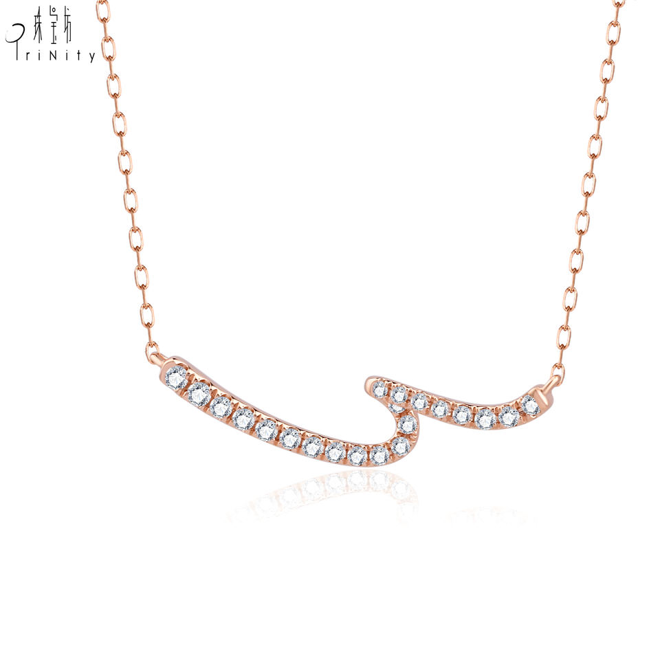 สร้อยคอทองคำแท้ 18K รุ่น New Curve Series ประดับเพชรแท้ สร้อยคอแบบคลาวิเคิล สำหรับเป็นของขวัญวันเกิดผู้หญิง