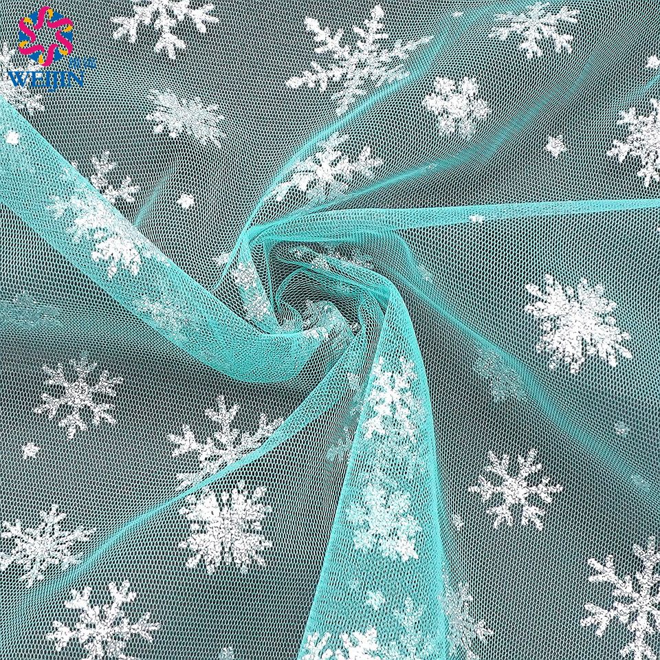ผ้าโพลีเอสเตอร์แผ่นเงิน100% แบบใหม่ประกายเกล็ดหิมะฟอยล์ผ้าตาข่ายผ้าซาตินกระโปรงงานปาร์ตี้เวทีแบบลำลอง