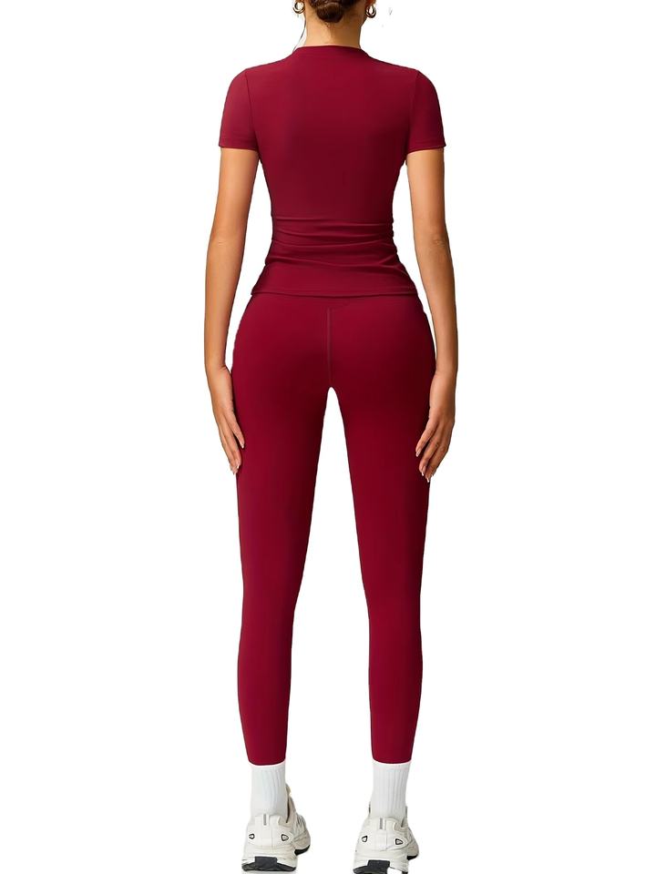 ชุดออกกำลังกายโยคะผู้หญิงแบบใหม่ 2 ชิ้น สีพื้น เอวยางยืด ผ้าเนื้อนุ่ม ยืดหยุ่น น้ำหนักเบา