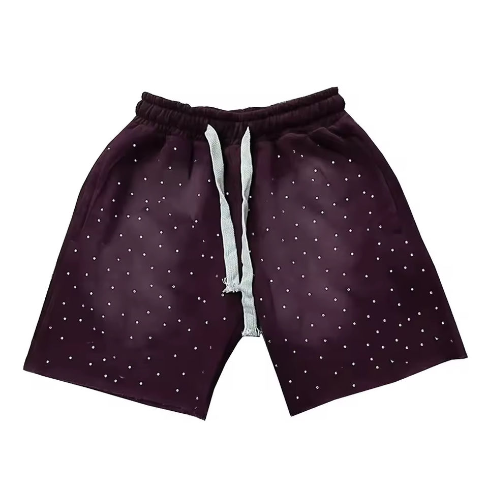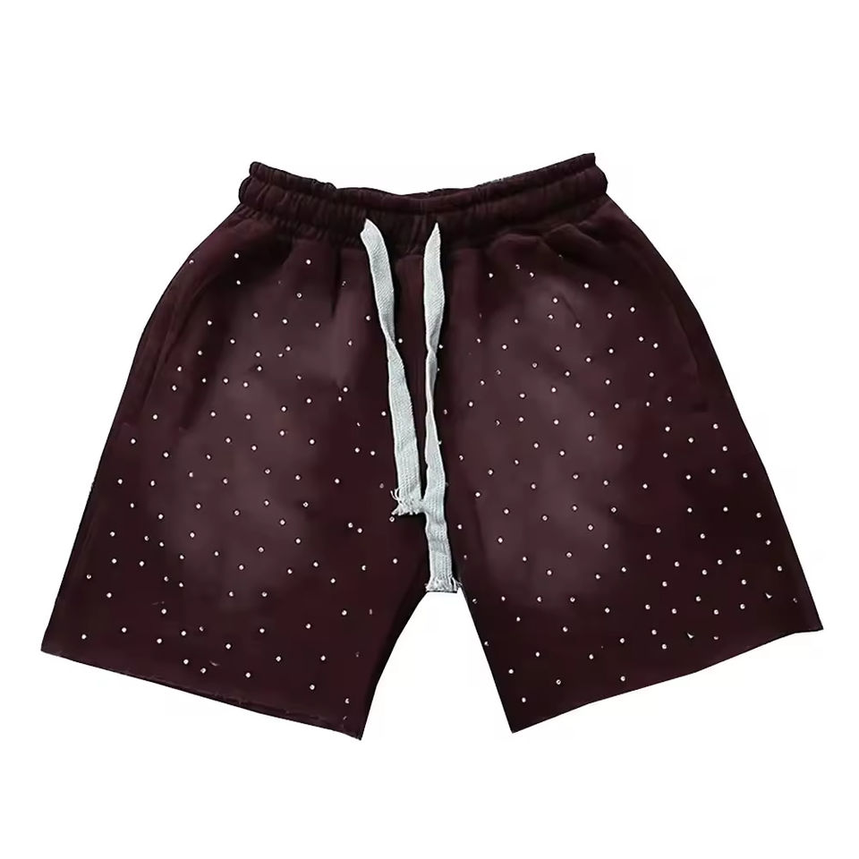 กางเกงขาสั้นผู้ชายรุ่นใหม่ปี 2026 สไตล์วินเทจ ล้างสีแบบแอซิด แห้งเร็ว ลายพิมพ์ล็อคพัฟ แต่งกระเป๋าประดับเพชร
