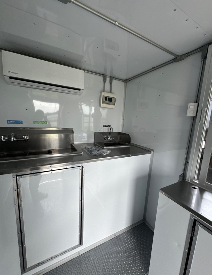 รถพ่วงบรรทุกอาหารสำหรับห้องครัวเคลื่อนที่มี8X12ปิดล้อมแบบกำหนดเองใหม่