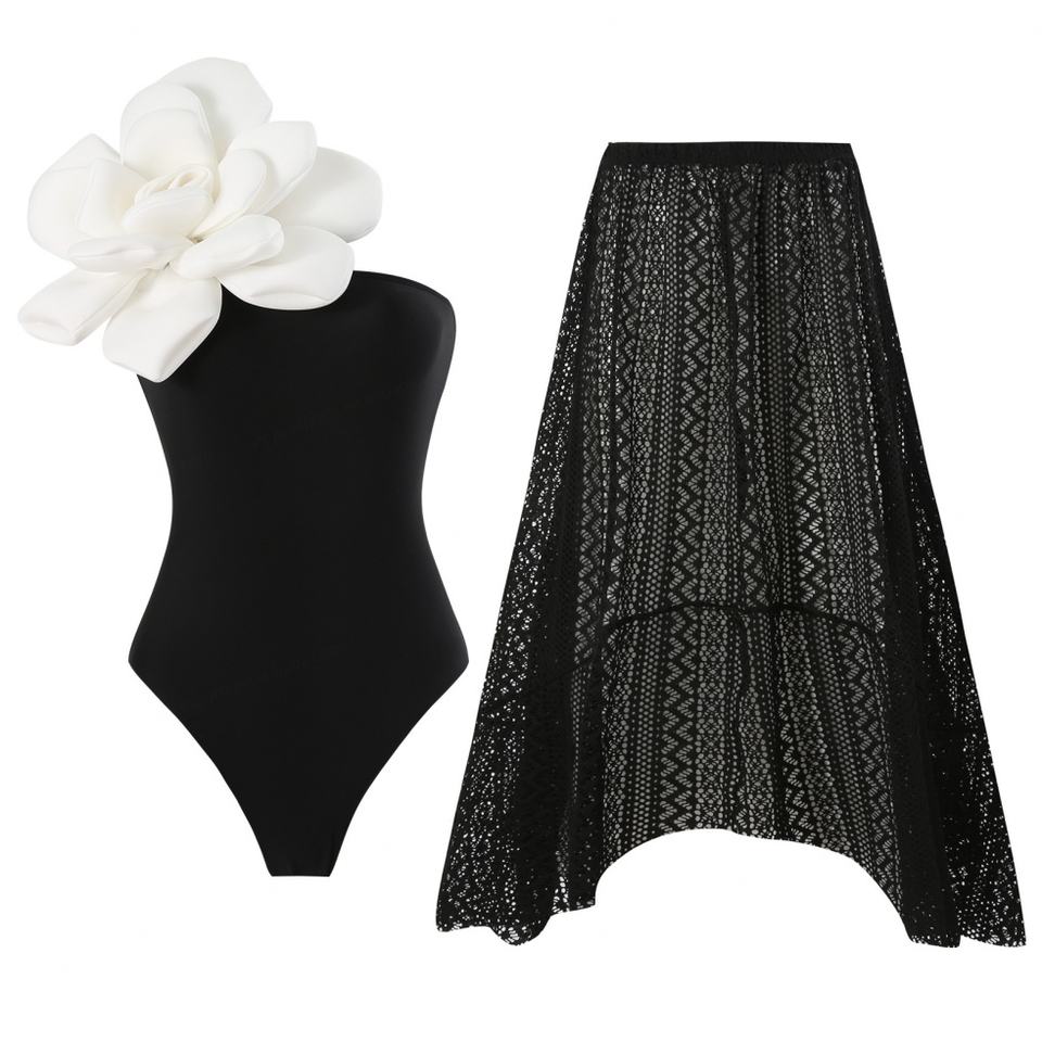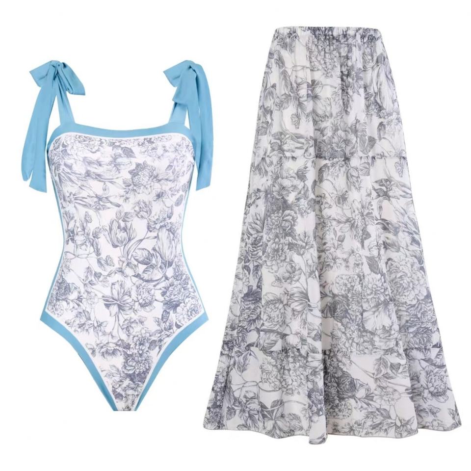 ชุดบิกินี่พิมพ์ลายดอกไม้แบบใหม่ 3 ชิ้น แห้งเร็ว ป้องกันแบคทีเรีย ชุดชายหาดหรูหราสำหรับผู้หญิง ฤดูร้อน โลโก้ด้านหน้า