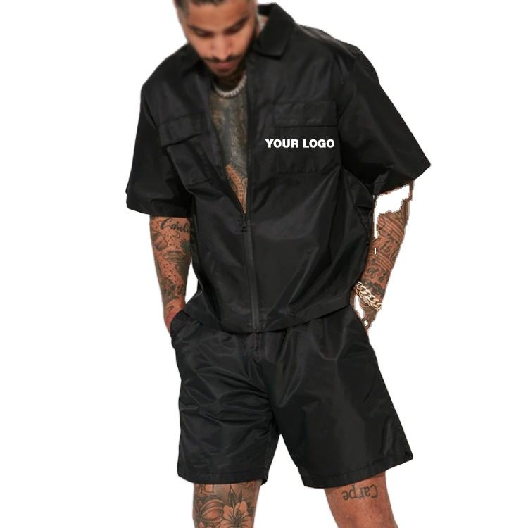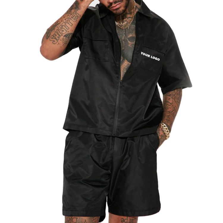 ชุดเซ็ตเสื้อแจ็คเก็ตกันลมและกางเกงขาสั้นลำลองสำหรับผู้ชายแบบใหม่ ผ้าโพลีเอสเตอร์/คอตตอน แห้งเร็ว สไตล์สตรีทแวร์