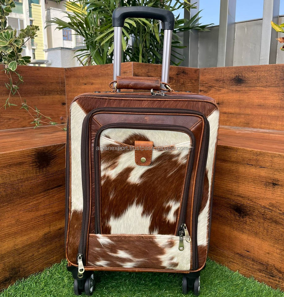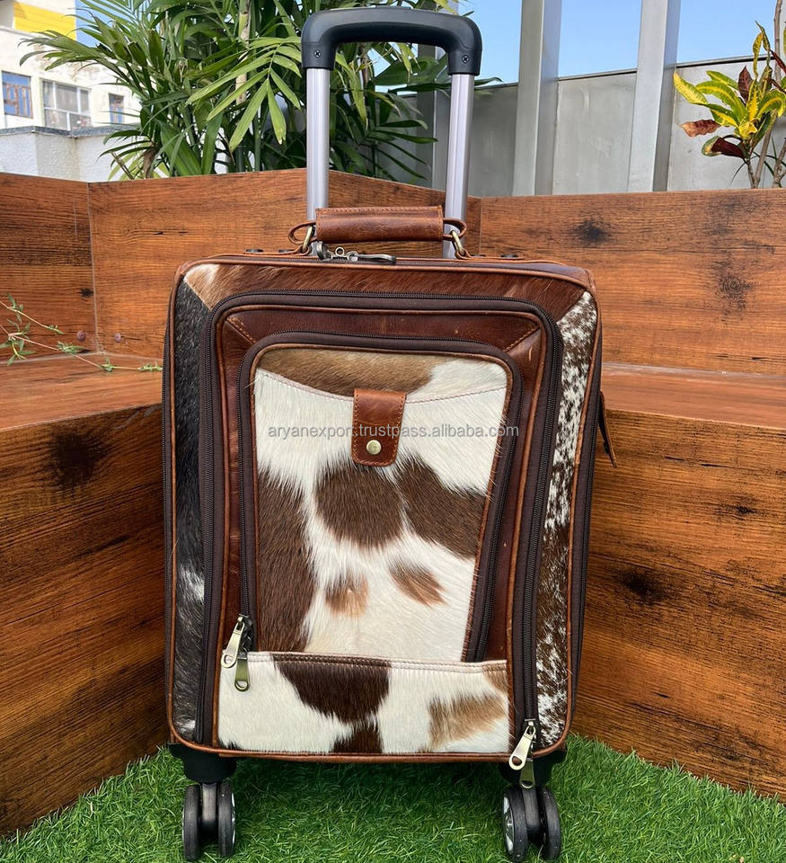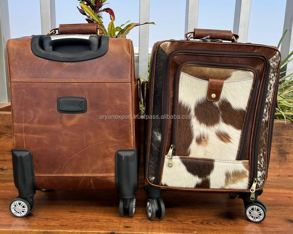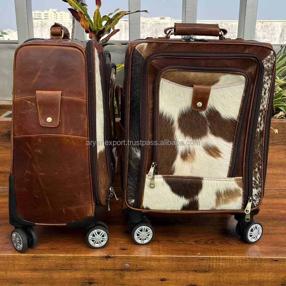 กระเป๋าเดินทางแบบมีล้อลากสำหรับผู้ชายหนังวัวขนาด14นิ้วกระเป๋าหนังแท้แบบสั่งทำใหม่
