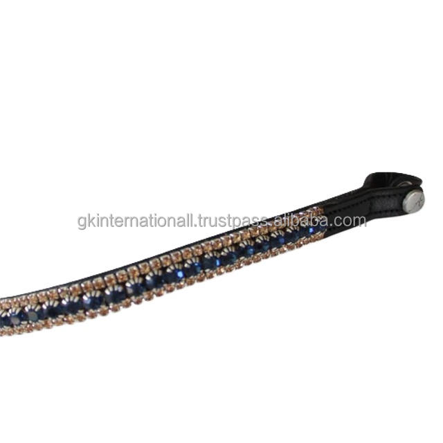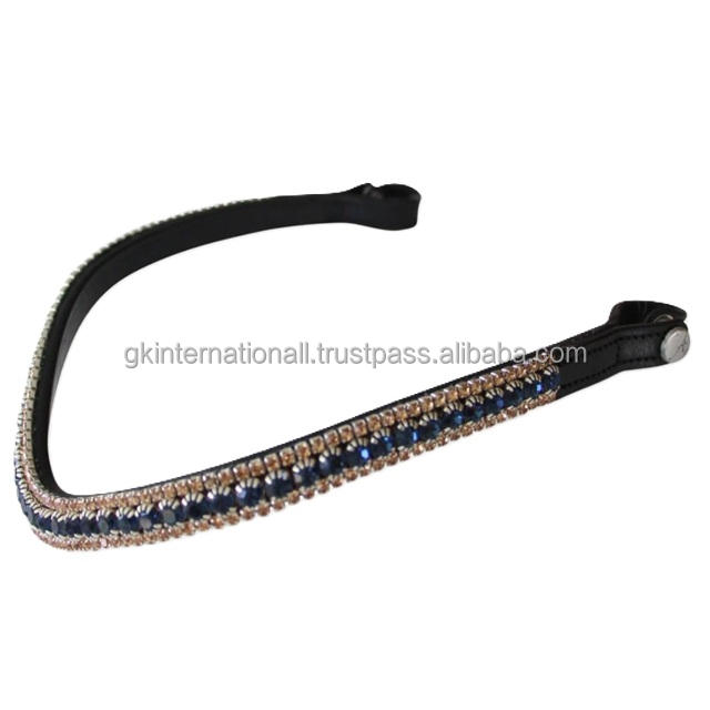 อุปกรณ์ขี่ม้าสำหรับแข่งม้า สายคาดหน้าผากม้าหนังลายคลื่นประดับคริสตัลและหินประกายหรูหรา มีทุกขนาดตามสั่ง