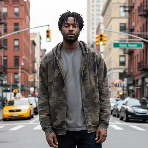 เสื้อฮู้ดดี้ผู้ชายทรงบ็อกซี่ ผ้าคอตตอน 420 GSM พิมพ์ลายทั่วตัว ลายพราง วินเทจ ดีไซน์ขาดๆ ซิปหน้า รุ่นใหม่