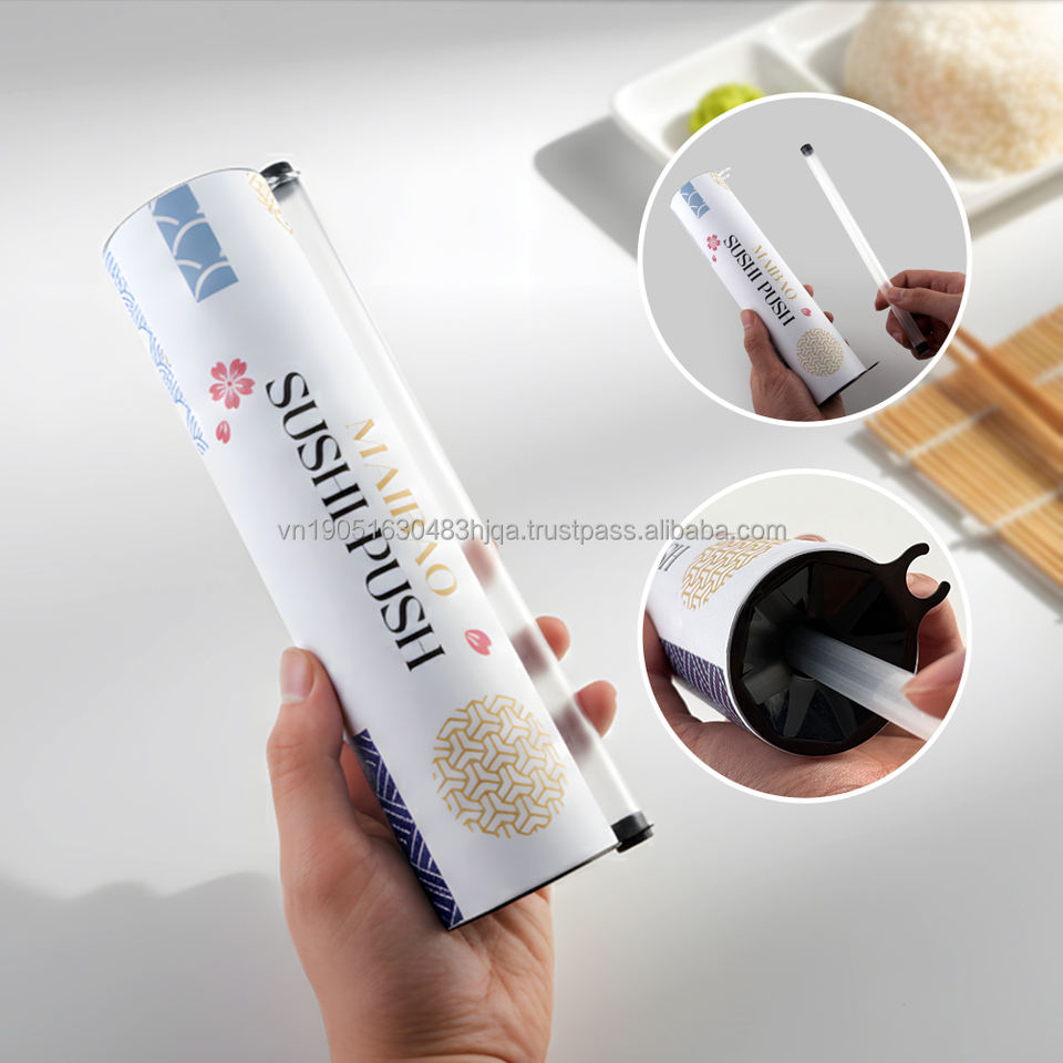 กล่องบรรจุภัณฑ์ซูชิแบบใหม่ รีไซเคิลได้ ทำจากกระดาษฟอยล์อะลูมิเนียม รูปทรงกระบอก พร้อมแท่งซอส