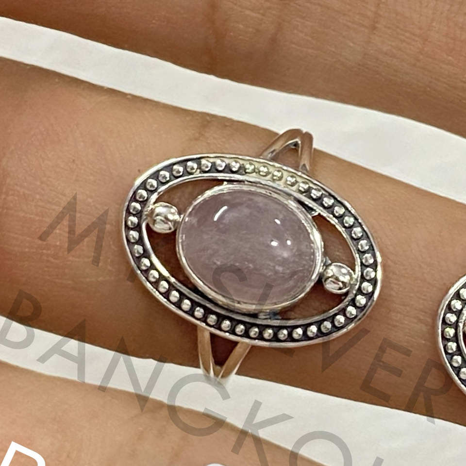 แหวนดีไซน์ใหม่ทำมือจากเงินแท้ 925 สไตล์โบฮีเมียน ประดับด้วยพลอยโรสควอตซ์ทรงกลม