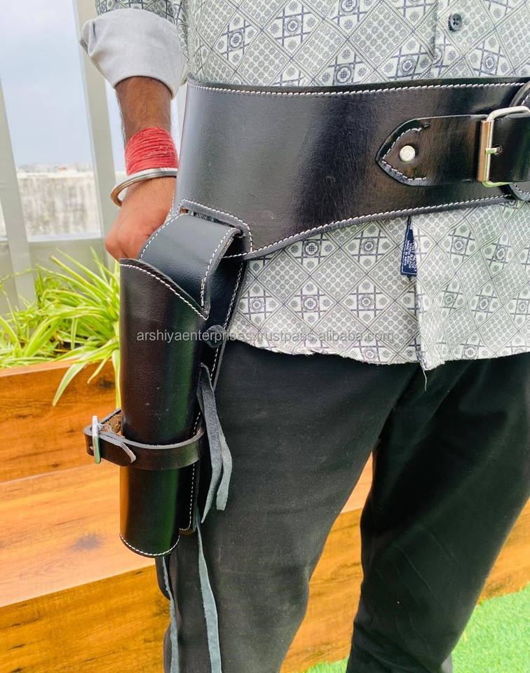 ซองใส่ปืนหนังแท้คุณภาพสูงแบบตะวันตกสำหรับคาวบอย แบบเปิดนิ้วเท้า พร้อมเข็มขัดปรับได้ งานแฮนด์เมดใหม่