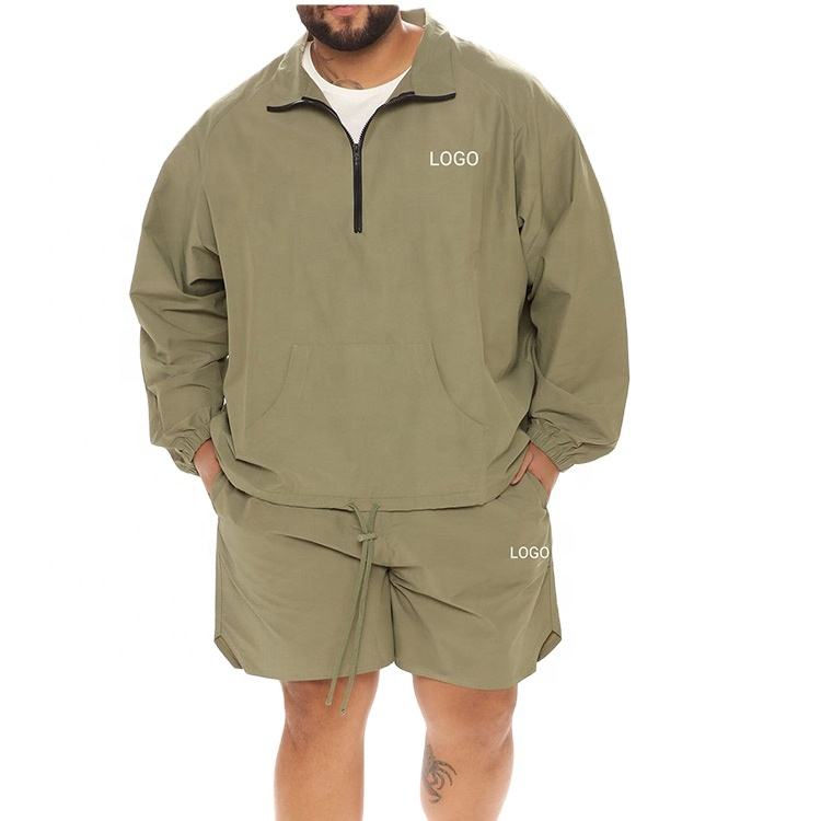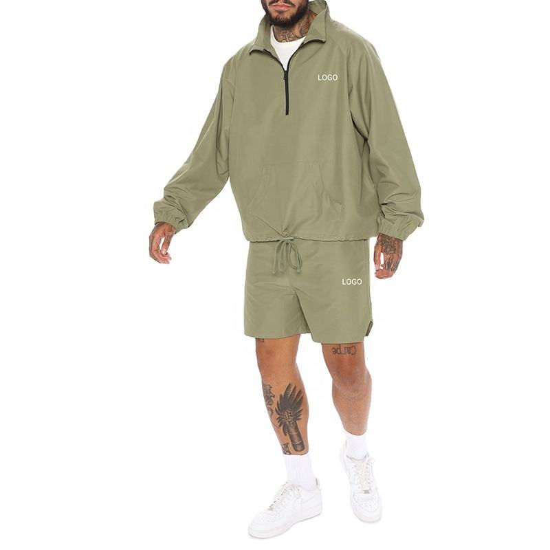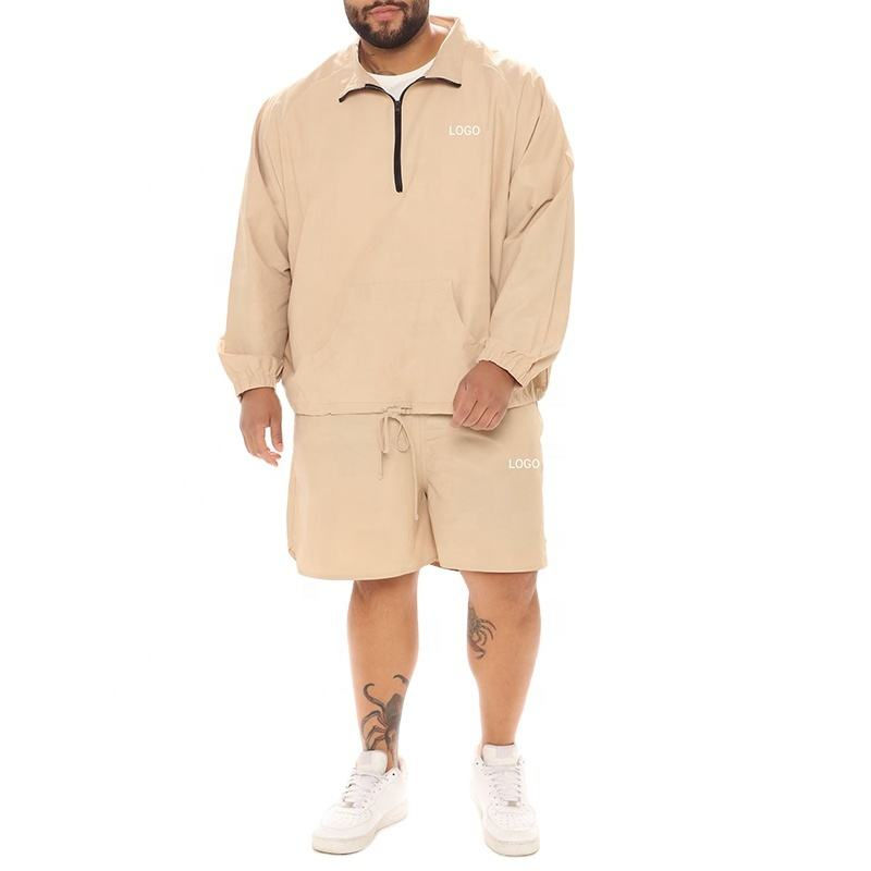 เสื้อแจ็คเก็ตกางเกงขาสั้นของผู้ชายชุด2ชิ้นกางเกงขาสั้นเอวยางยืดระบายอากาศมีกระเป๋าโลโก้ออกแบบได้ตามต้องการ