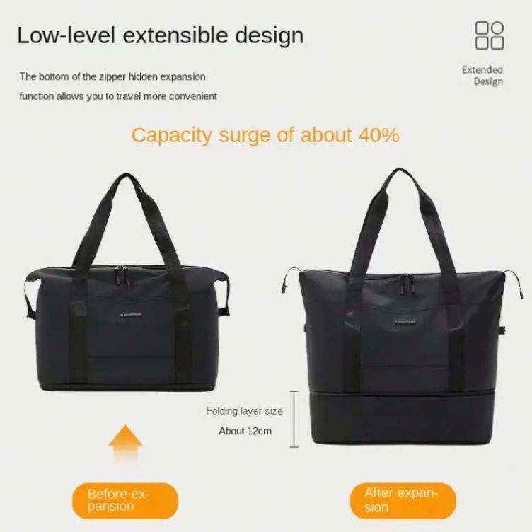 กระเป๋าเดินทางแบบพับได้ขนาดใหญ่ น้ำหนักเบา ผลิตจากหนังเคลือบ PU พร้อมฟิล์มหนังอ็อกซ์ฟอร์ด สำหรับใส่เสื้อผ้าและของใช้ส่วนตัว พร้อมโลโก้แบบกำหนดเองรุ่นใหม่