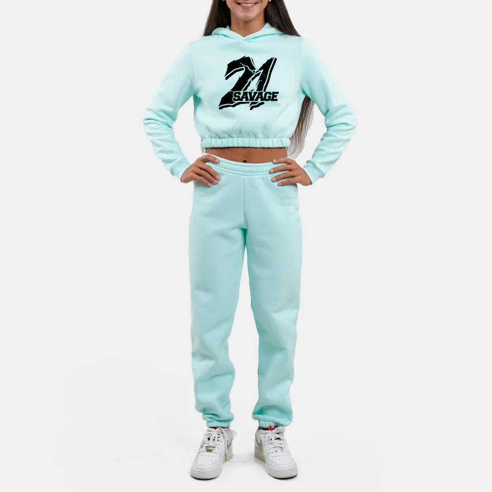 เซ็ตเสื้อครอปมีฮู้ดสำหรับผู้หญิงชุดเสื้อครอปมีฮู้ดผ้าคอตตอนระบายอากาศได้ดีโลโก้
