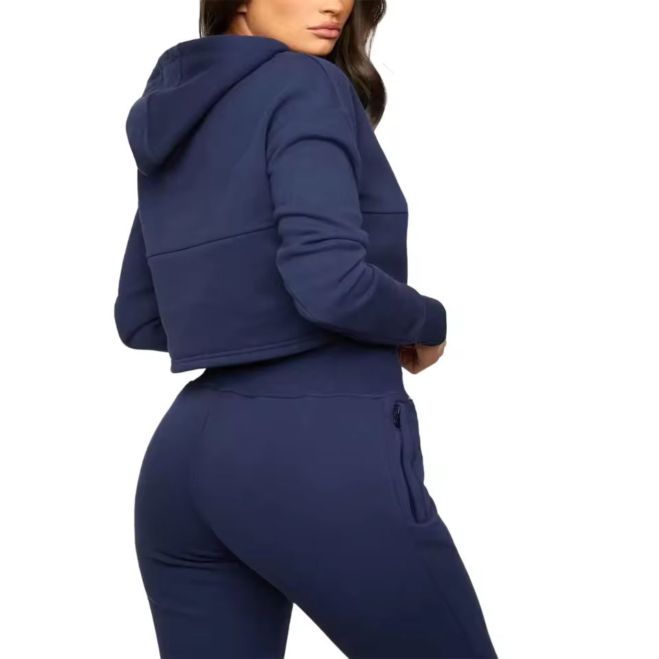ชุดวอร์มออกกำลังกายผู้หญิงแบบ 2 ชิ้น ผ้าฟลีซ 100% คอตตอน ป้องกันไฟฟ้าสถิตย์ มีเชือกผูก ปรับได้ พร้อมโลโก้แบบใหม่