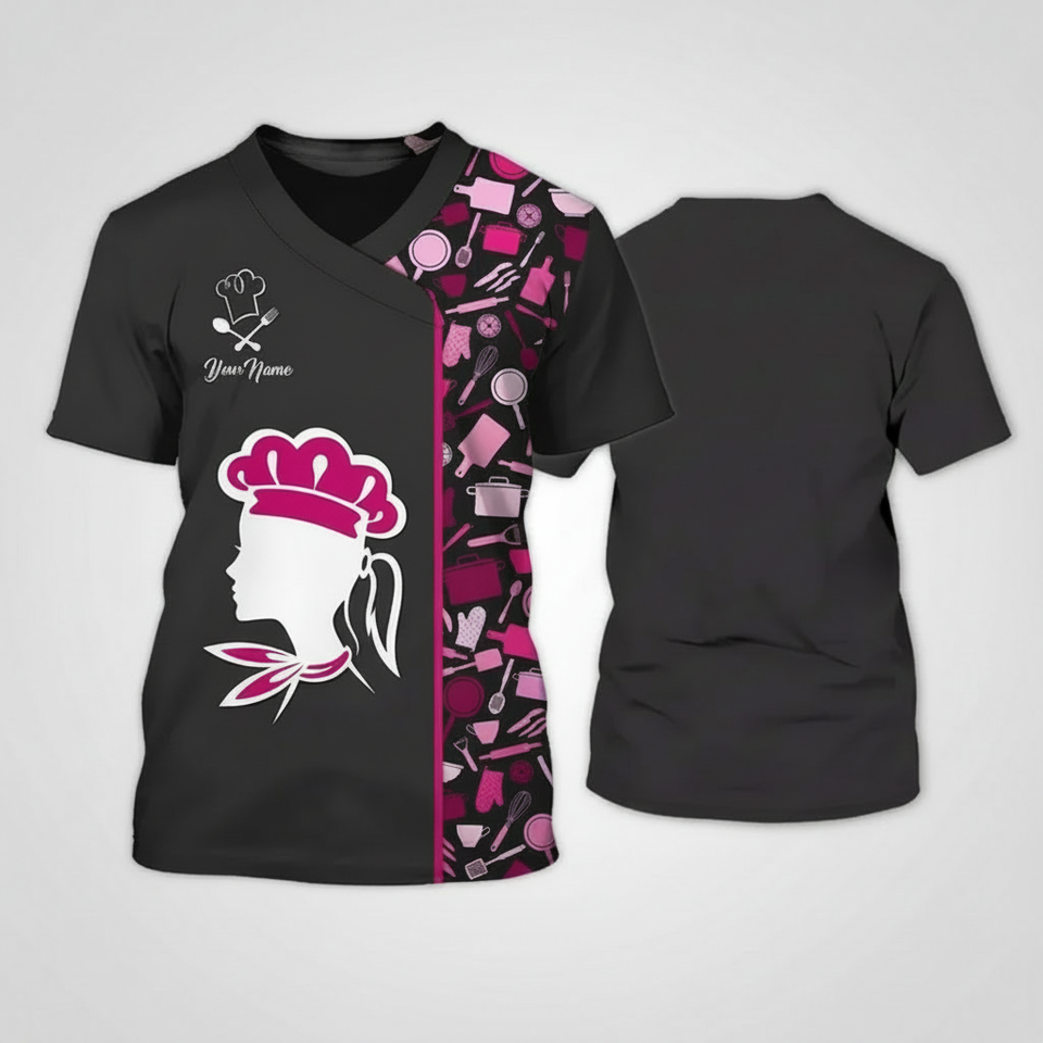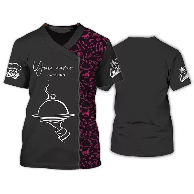 เสื้อแจ็กเก็ตเครื่องแบบเชฟใช้ได้ทั้งชายและหญิงสำหรับใช้ในครัวดีไซน์ออกแบบได้ตามที่ต้องการปักโลโก้ไว้ด้วยแขนเสื้อสั้น