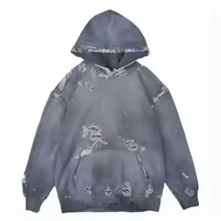 เสื้อฮู้ดผู้ชายโอเวอร์ไซซ์โอเวอร์ไซซ์ซักลายกรดมีซิปแบบฉีกแนววินเทจน้ำหนักมากออกแบบได้ตามต้องการ