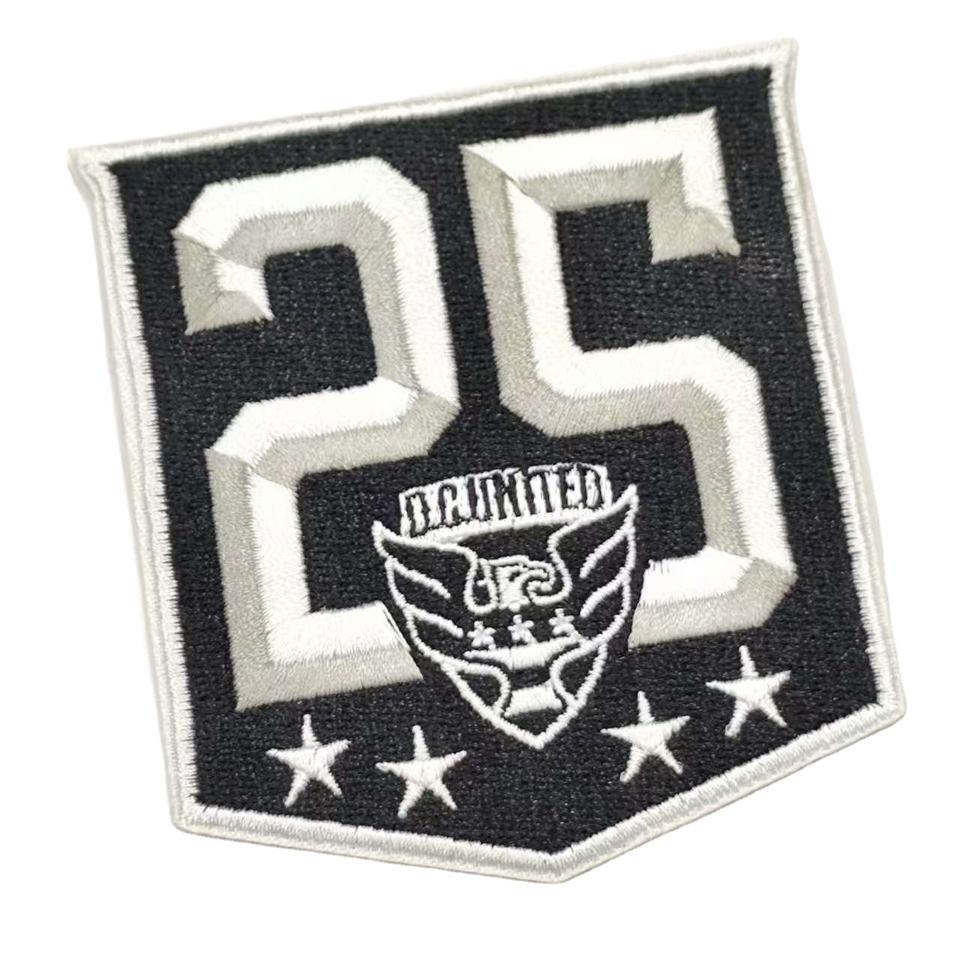 แพทช์ปักอักษร United Shield แบบใหม่ หมายเลข 25 ผลิตจากผ้าเชนิลล์ที่เป็นมิตรต่อสิ่งแวดล้อม มีขนาดใหญ่/เล็ก สีขาวและสีเทา