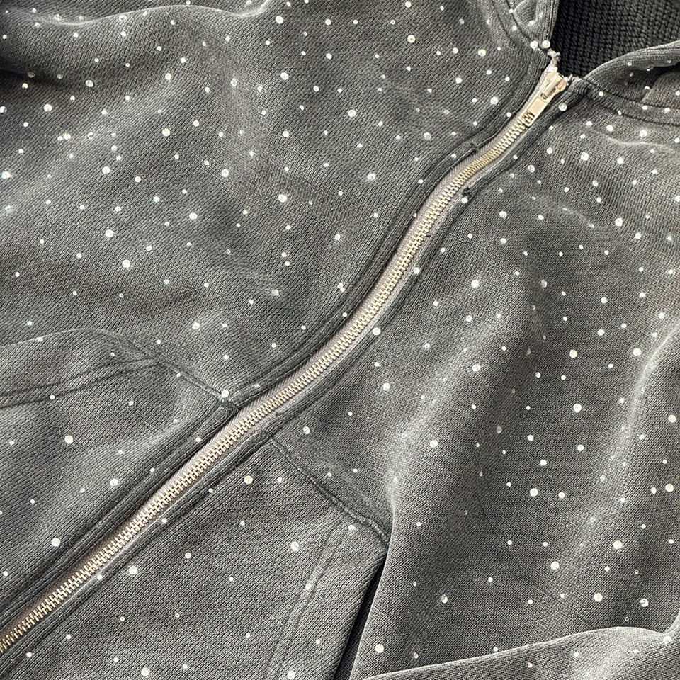 เสื้อฮู้ดผ้าเช็ดทำความสะอาดกรดประดับพลอยเทียมของผู้ชาย