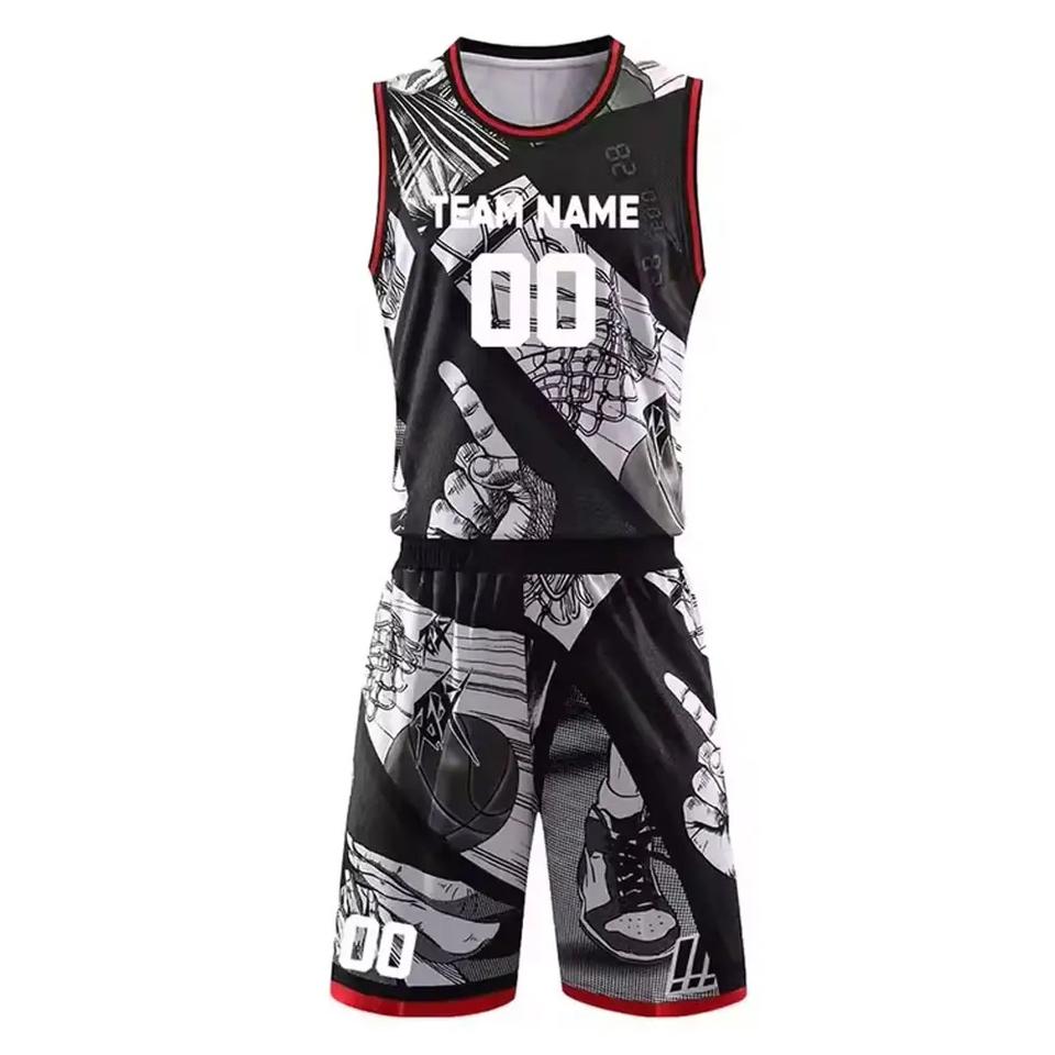 ชุดบาสเก็ตบอลทีมแบบใหม่ ออกแบบเองได้ ขายส่ง คุณภาพดี แห้งเร็ว ผ้าโพลีเอสเตอร์ 100%