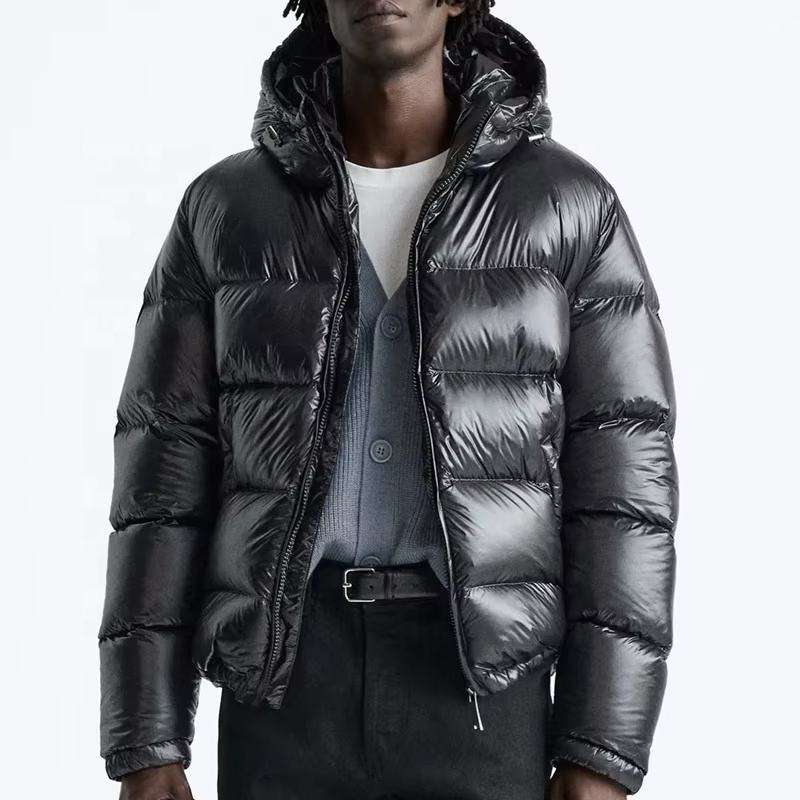 เสื้อแจ็คเก็ตพัฟเฟอร์แบบมีฮู้ดสำหรับผู้ชาย ลายพรางสีดำ สปริงคุณภาพสูง โลโก้แบบกำหนดเองใหม่
