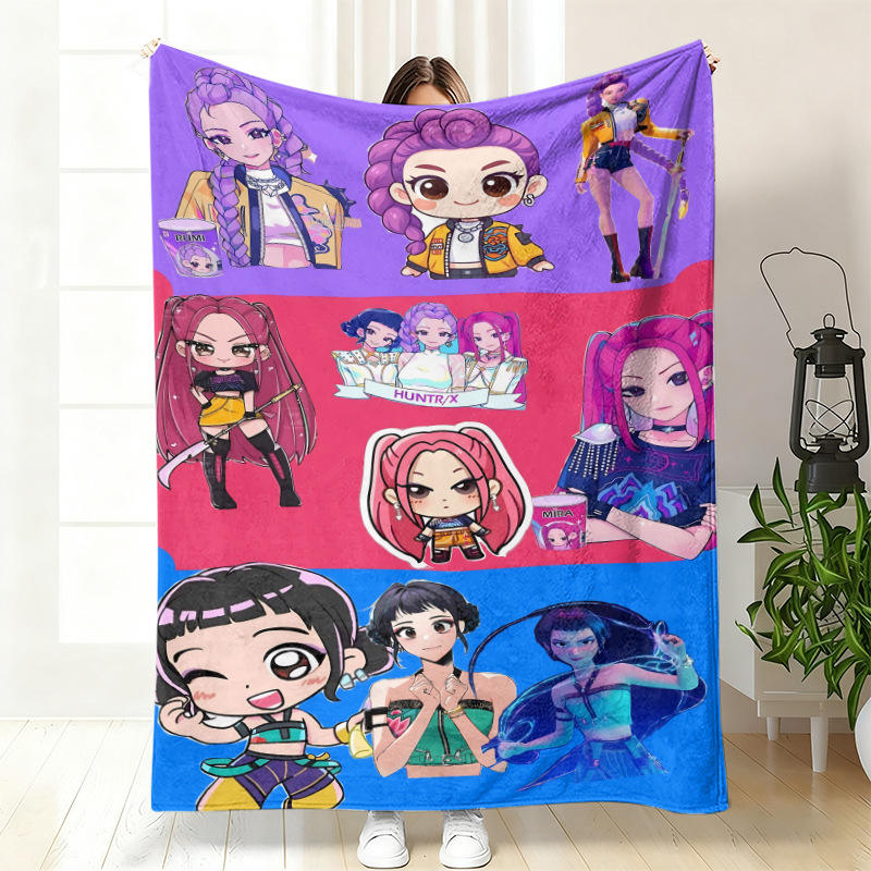 ผ้าห่มแฟลนเนลพิมพ์ลายอนิเมะ KPOP นักล่าแม่มด สไตล์โมเดิร์น ผลิตตามสั่ง ผ้าห่มนักล่าปีศาจ K-Pop สำหรับงีบหลับ ใช้ได้ทุกฤดู