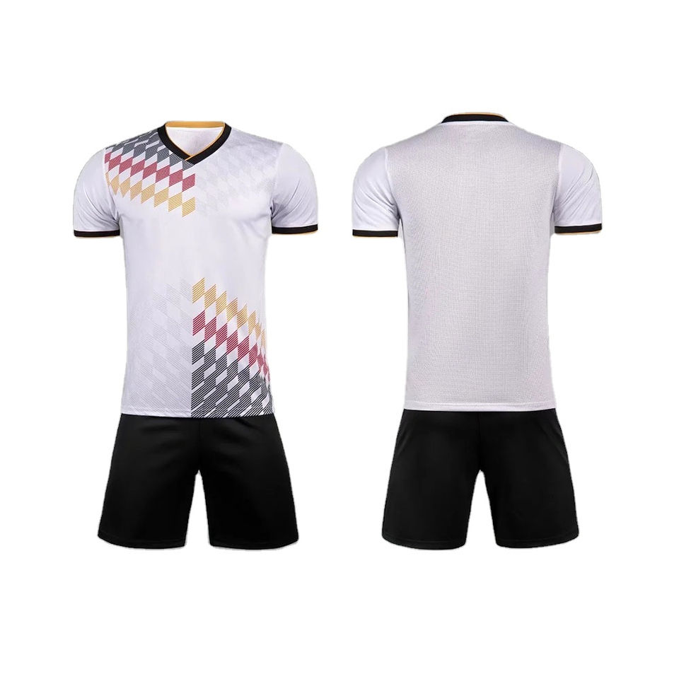 ชุดฟุตบอลชายแบบดิจิตอลซับลิเมชั่นสีสันปรับแต่งได้ใหม่ ชุด OEM โพลีเอสเตอร์ น้ำหนักเบา ระบายอากาศได้ดี แห้งเร็ว