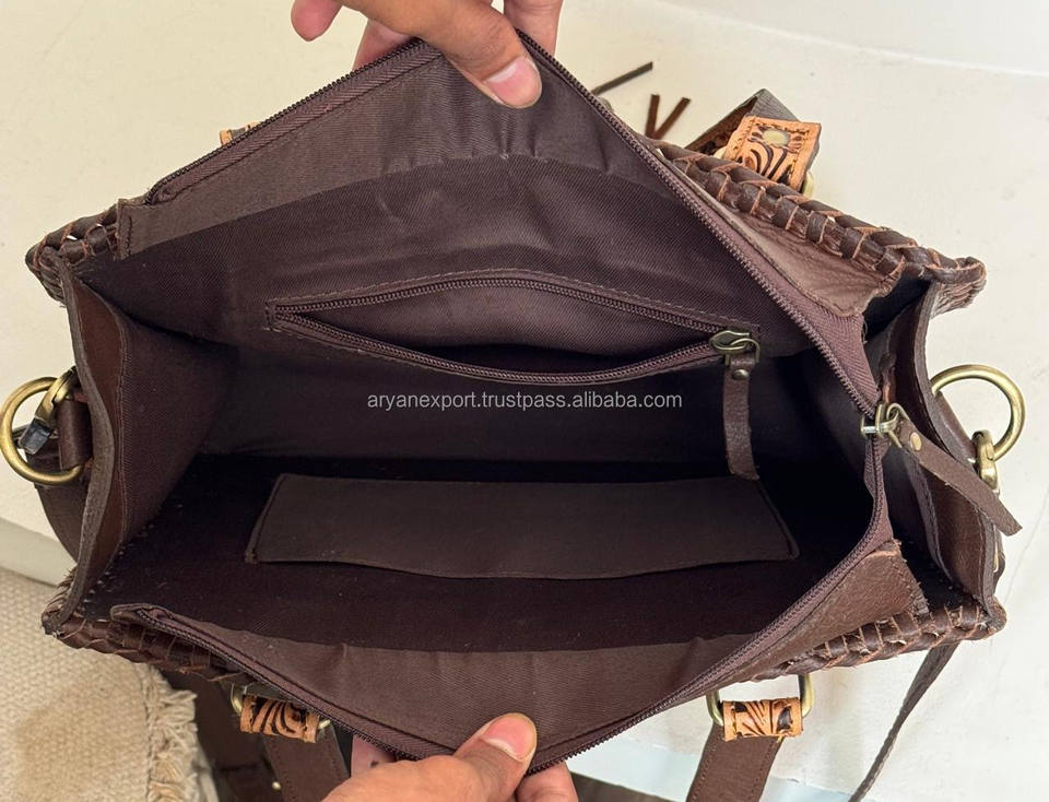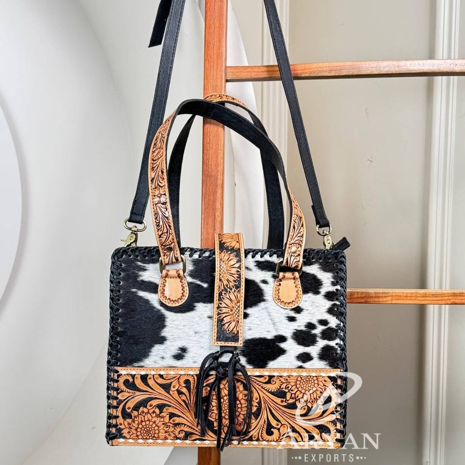 ชื่อผลิตภัณฑ์:กระเป๋าถือมีพู่หนังวัวทำมือ