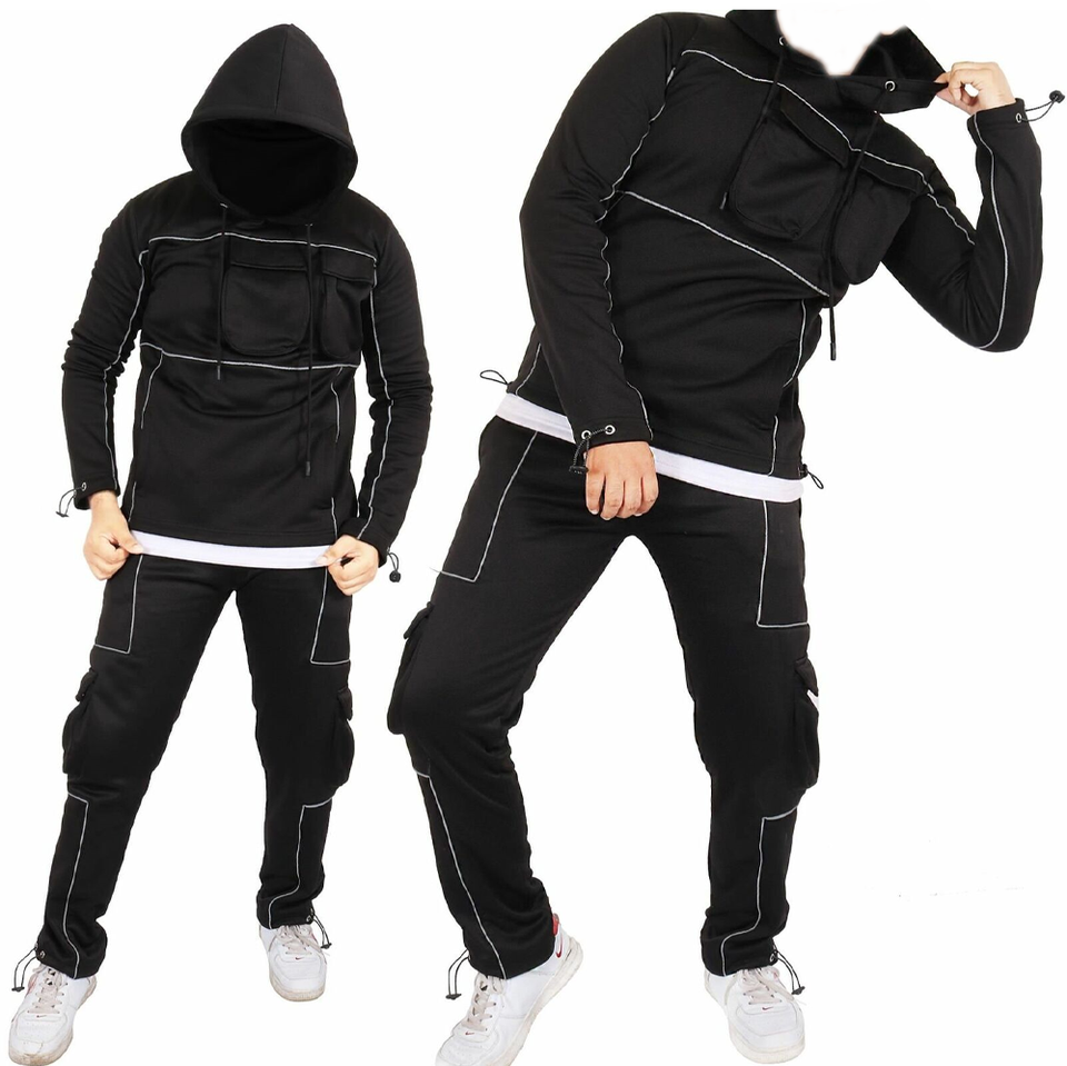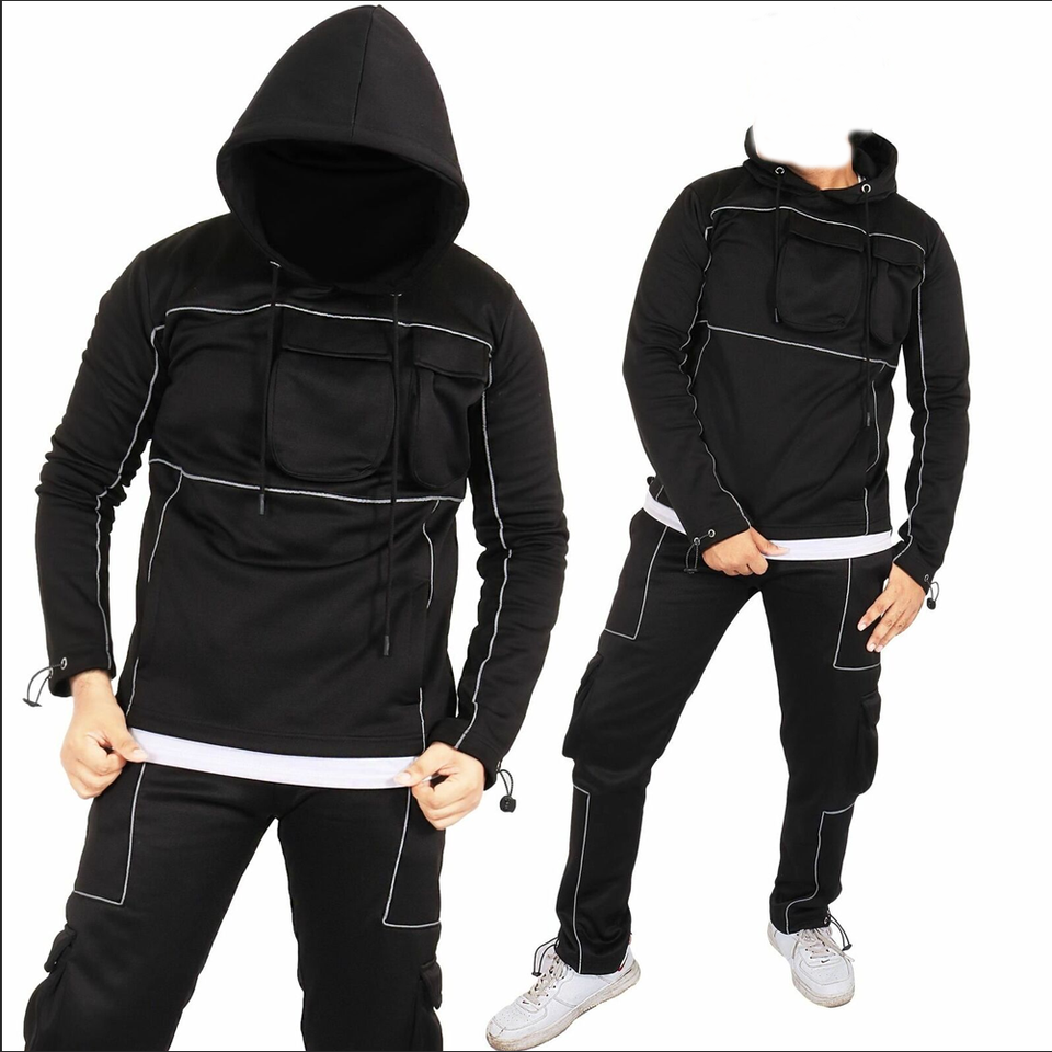 ชุดวอร์มมีฮู้ดสำหรับผู้ชาย,ชุดวอร์มแขนยาวสีดำล้วนออกแบบเองใหม่