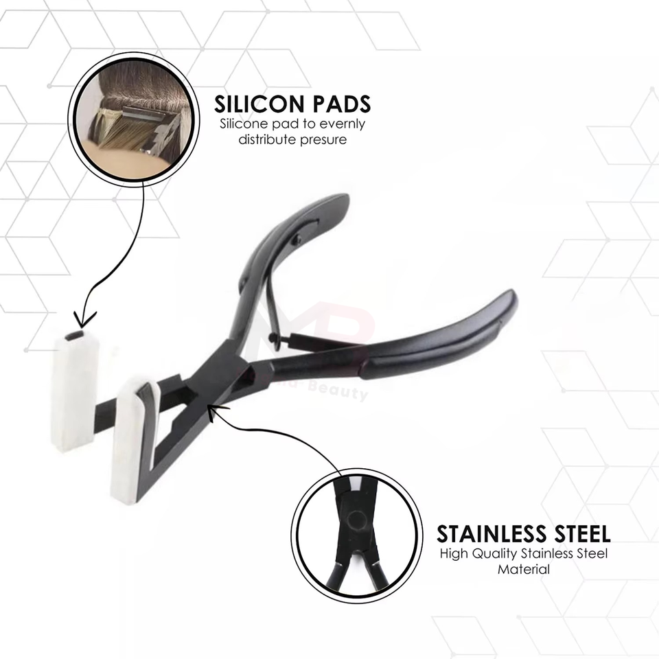 เครื่องมือต่อผมแบบมืออาชีพ ดีไซน์ใหม่ปรับแต่งได้ คีมจัดแต่งทรงผมเคลือบสีดำ พร้อมอุปกรณ์เสริมสำหรับเทปติดผม