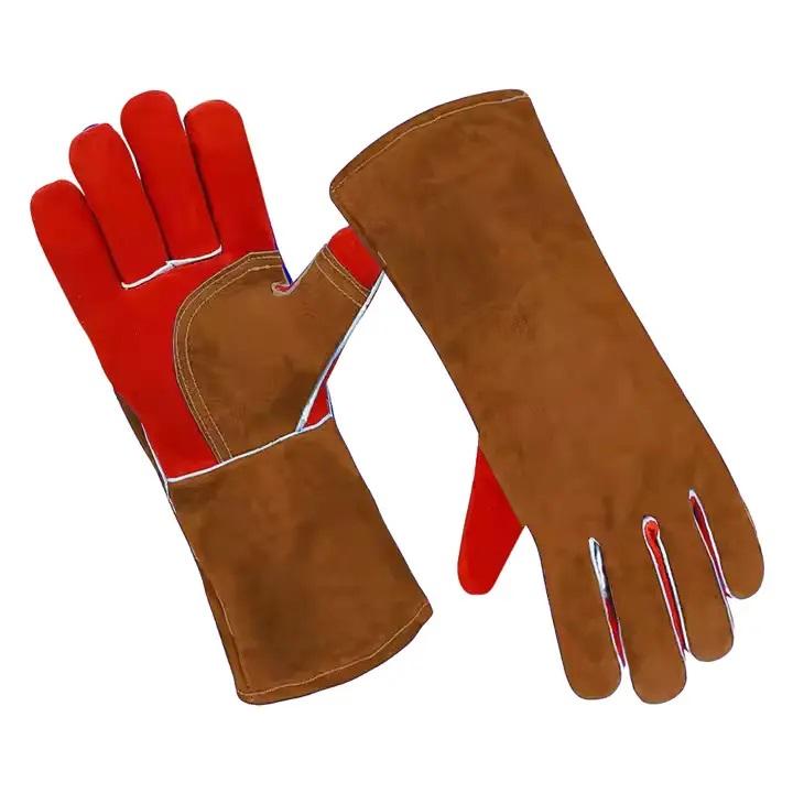 ถุงมือช่างหนังวัวกันไฟแยกอุปกรณ์ป้องกันมือสำหรับช่างเชื่อม