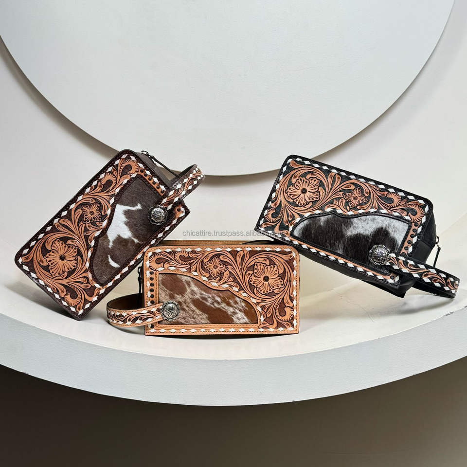 Hand-tooled Cowhide Women Makeup Bag